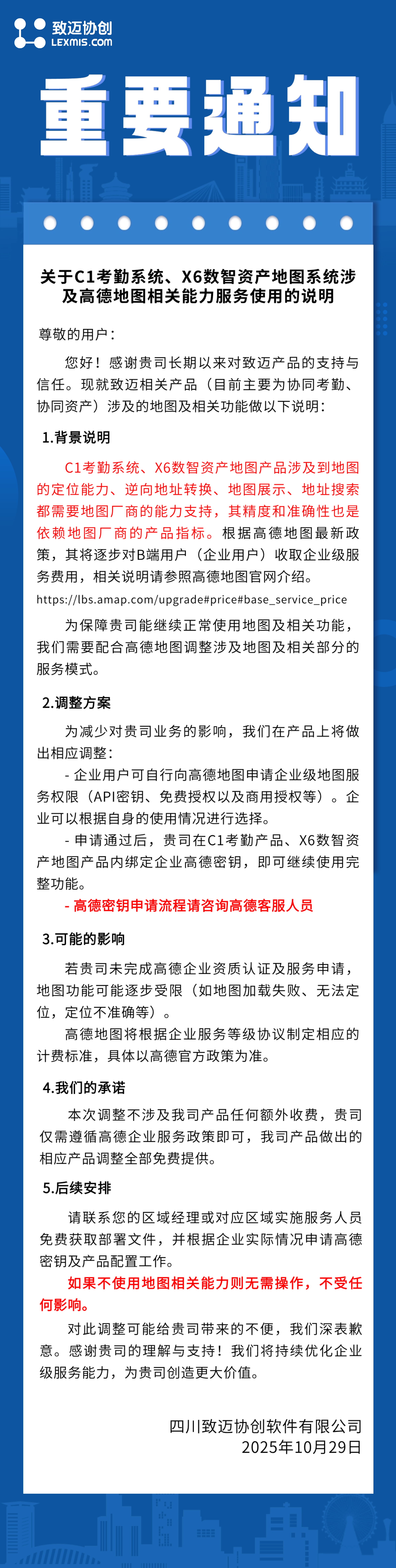 关于C1考勤、X6数智资产地图系统使用高德地图服务的说明
