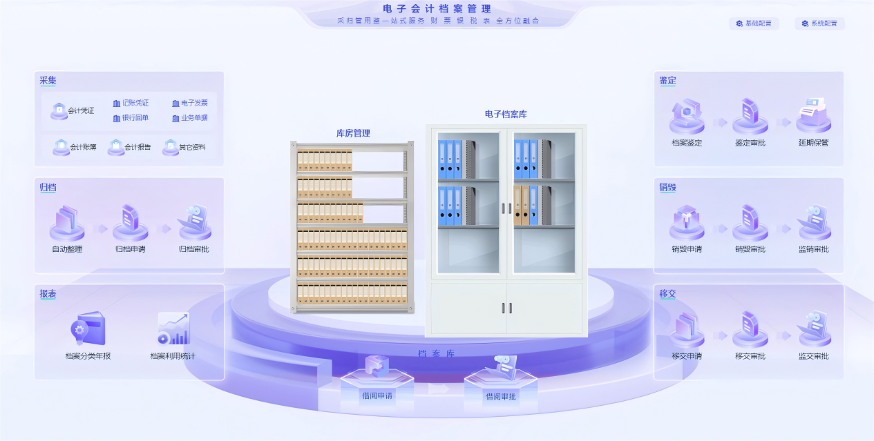 解决方案:支持多种方式灵活对接各类业务系统与财务系统,实现档案资料自动采集入库;同时提供手工登记、离线导入等补充模式,全面提升档案采集效率与数据完整性。